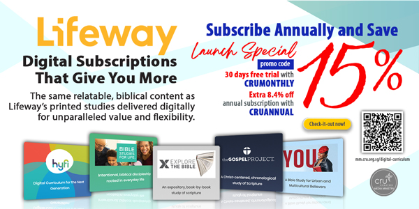 Cru Media Ministry offers digital subscriptions that disciples your church digitally. No more tedious administrative tasks, no more uploading to file-sharing sites, no more DIY websites! Digital Curriculum are designed to give you more ministry, more value, more control, and more connection.